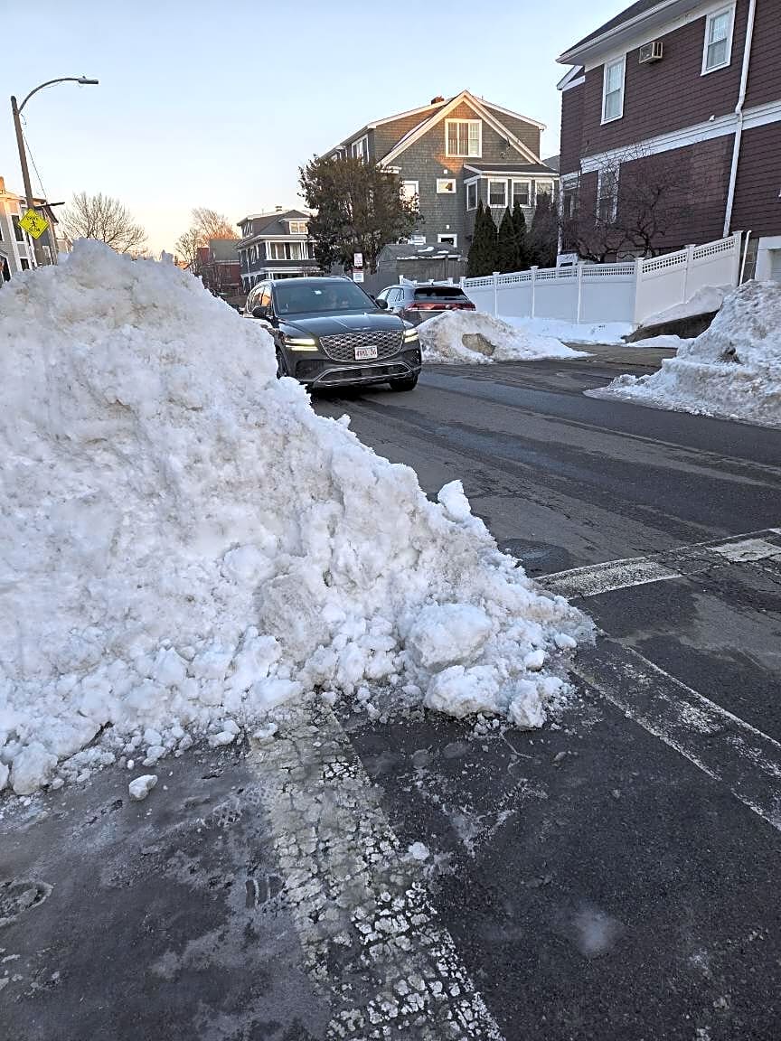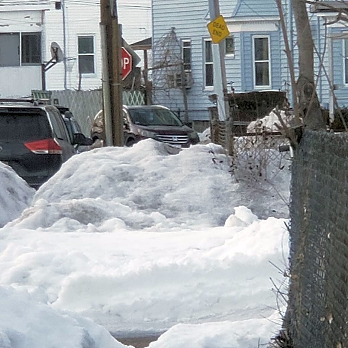 Intersection Of M St And E Eighth St, South Boston, Ma2 snow storms and my bus stop is filled d to the middle of the road.