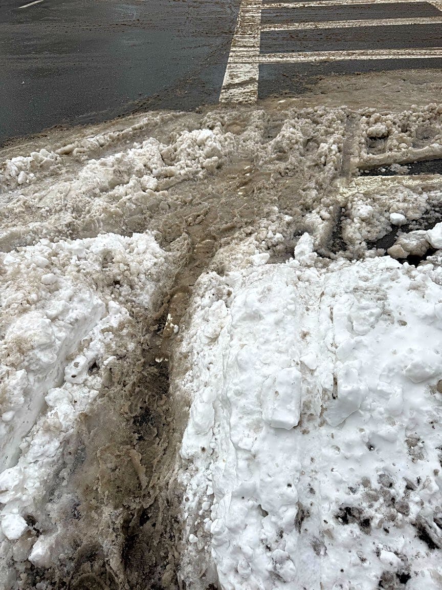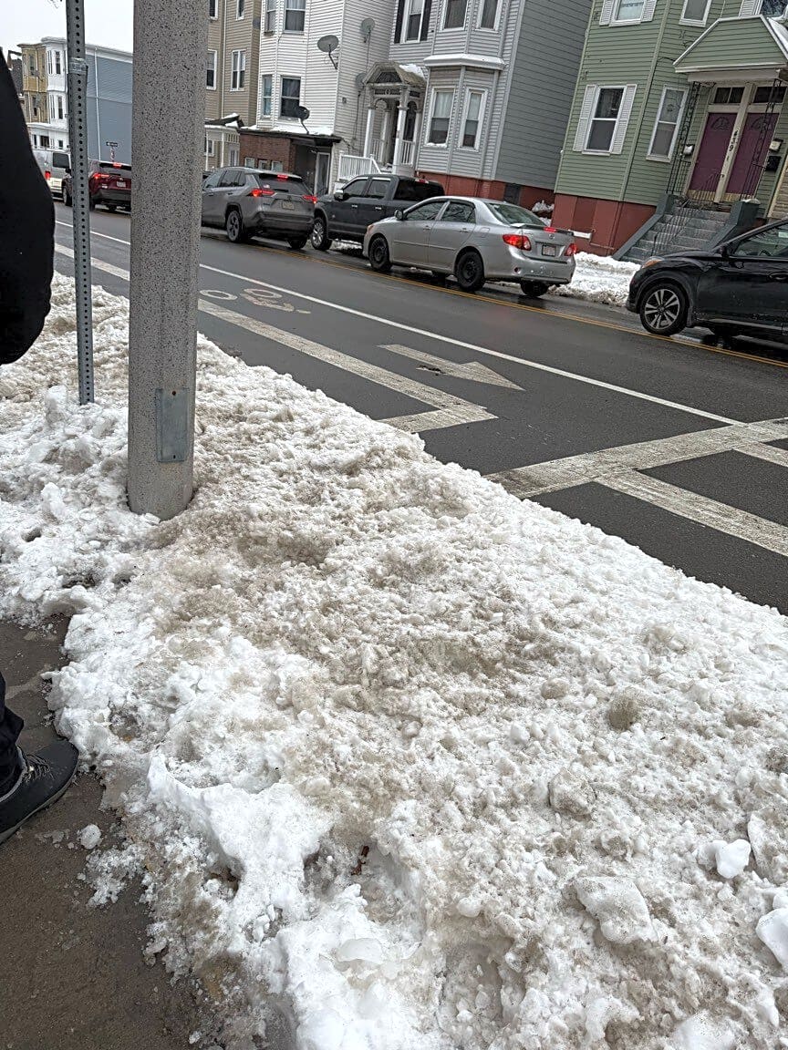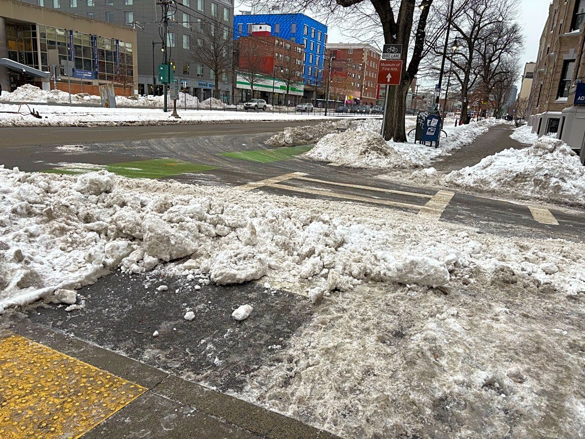 Intersection Of Naples Rd And Commonwealth Ave, Boston, MaSnow plow remains need cleanup to unblock crosswalk