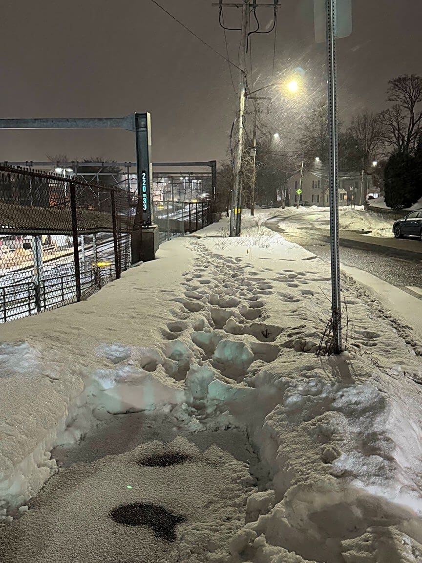 136 Trenton St, East Boston, Ma, 02128Side walk left with snow no space for wheelchairs steps on the way
