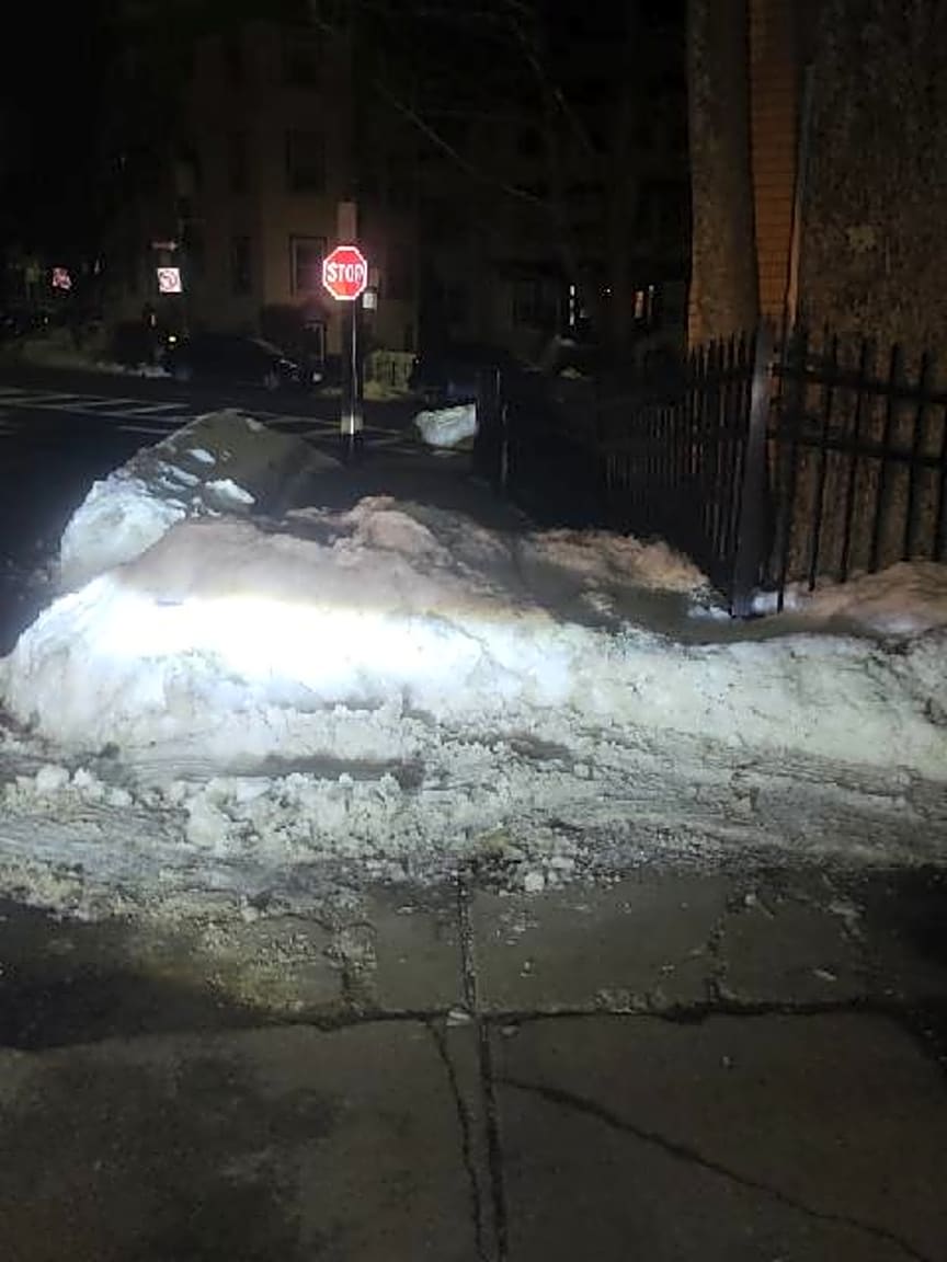 141 Sutherland Rd, Brighton, Ma, 02135Snow bank blocking sidewalk for wheelchair users.