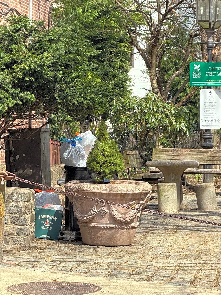 Intersection Of Greenough Ln And Unity St And Charter St, Boston, MaOverflowing trash