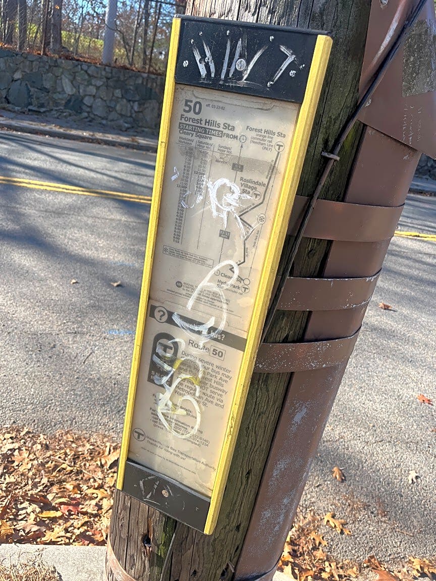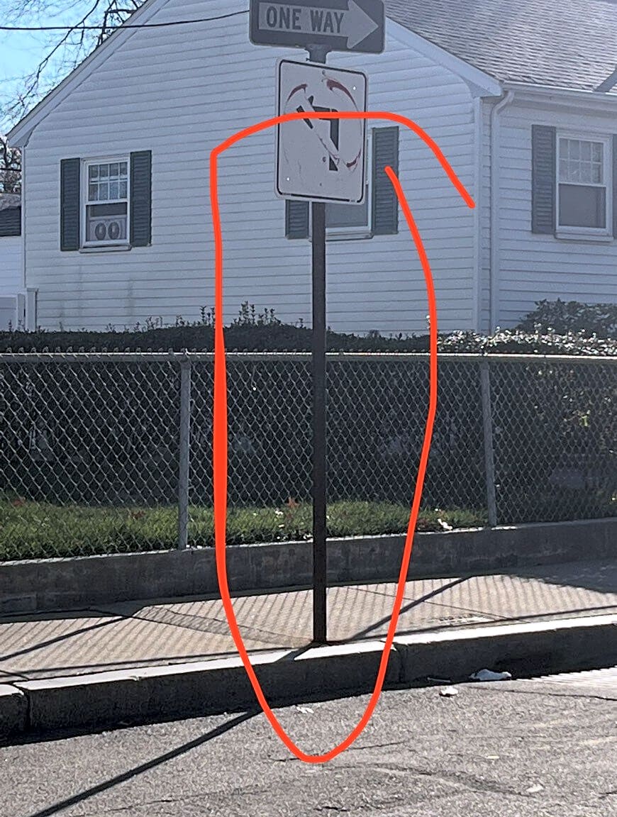 Intersection Of Morton St And Arborway, Jamaica Plain, Maneedle on the sidewalk plus one on the road