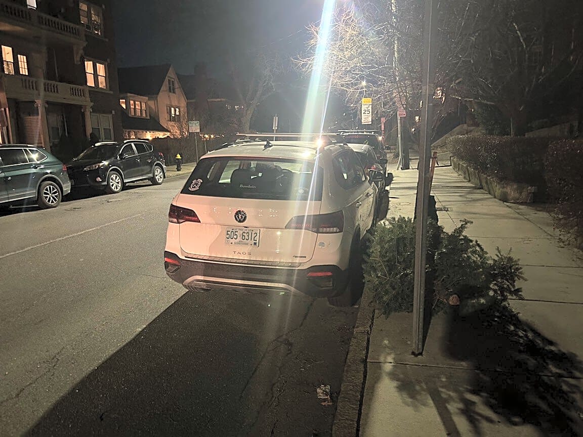 Intersection Of Whitten St And Dorchester Ave, Dorchester, MaCar fully blocking crosswalk at intersection. Please do your jobs and enforce parking rules in Dorchester.