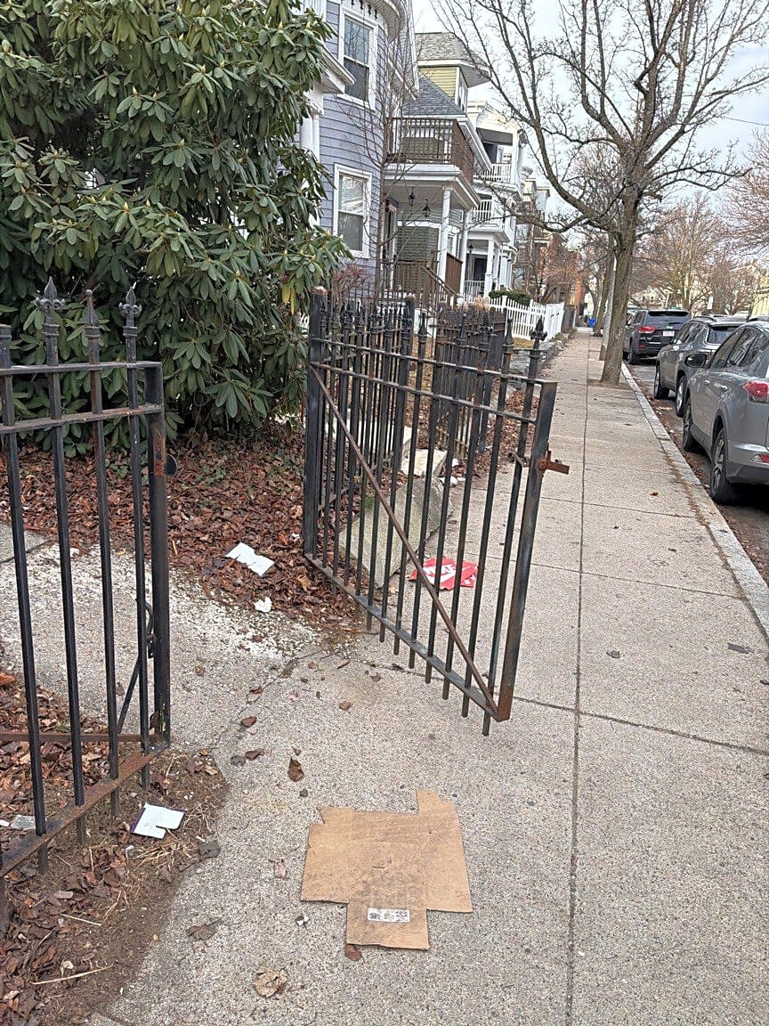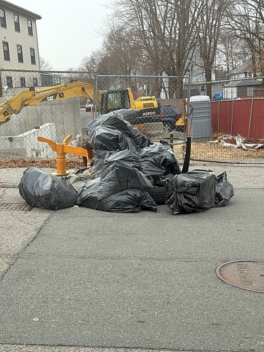 Intersection Of Ringgold St And Waltham St, Roxbury, MaTrash bag and trees next to Ringgold Park