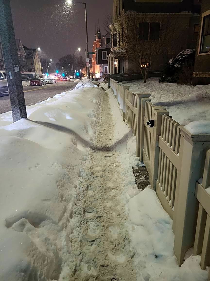 Intersection Of Carolina Ave And Custer St And South St, Jamaica Plain, MaSidewalk not shoveled