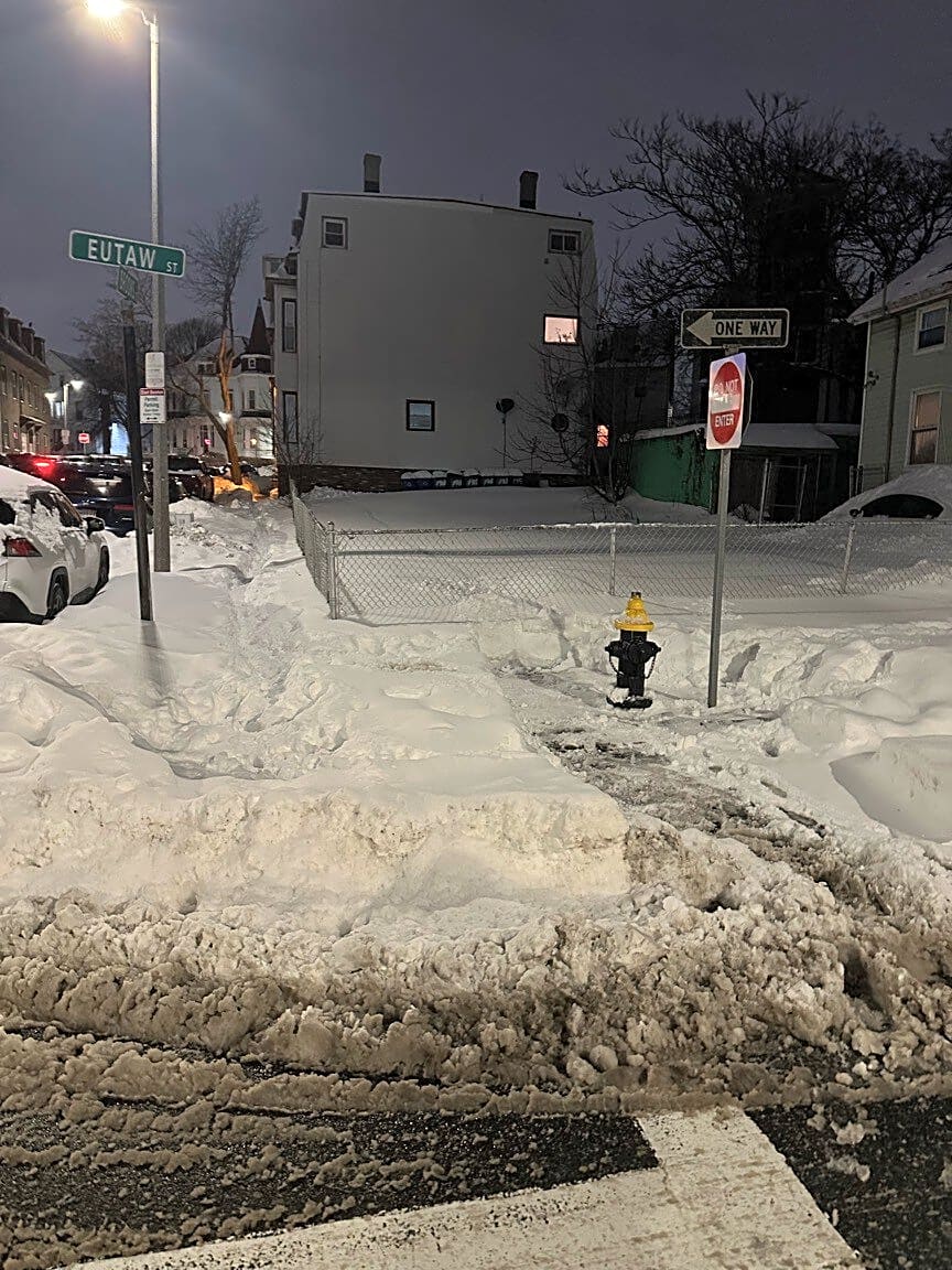 Intersection Of Eutaw St And Brooks St, East Boston, MaThe owner of this property is in the process of developing this corner a lot. It might be helpful to remind him that it needs to be maintained in its entirety. Since the lot has been purchased, I’m not sure he’s ever plowed the sidewalk.