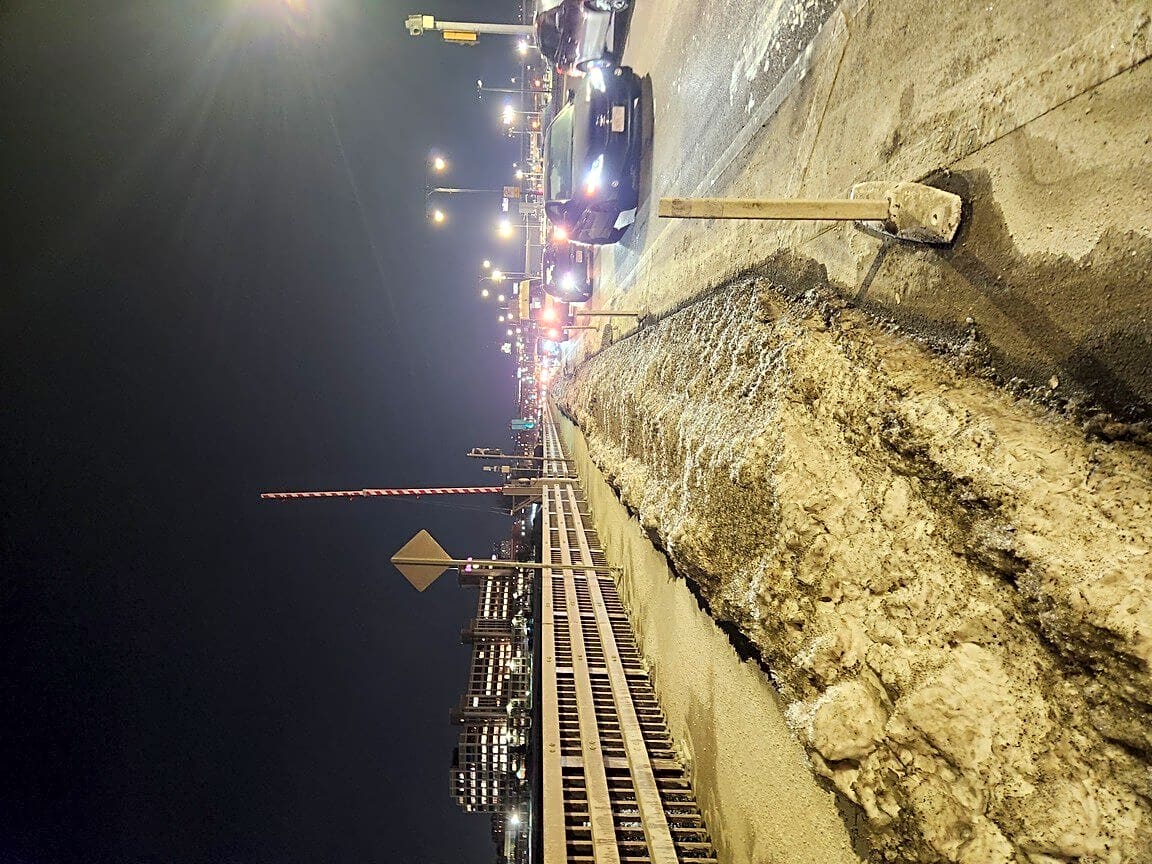 Intersection Of Mapes St And Park St, Dorchester, MaI have reported this multiple times, just took this pic, there is no lighting under bridge & it remains unshoveled. We need to safely get to the pathetic train, it’s been 2 weeks