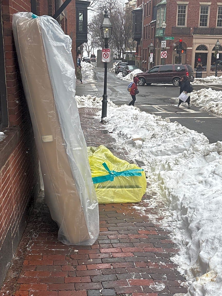 93 Charles St, Boston, Ma, 02114Garbage and mattresses blocking the sidewalk for days