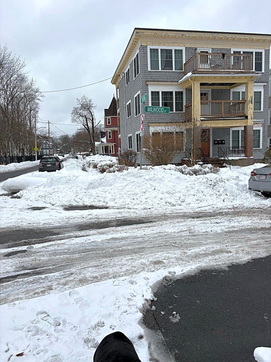 13 Lester Pl, Jamaica Plain, Ma, 02130Snow for all of Lester Place was plowed to end of the dead end street. Pile is now so large that we can’t get cars out and there is no place to place the snow. Requesting some snow be removed so we have room to dig out the cars. Thanks