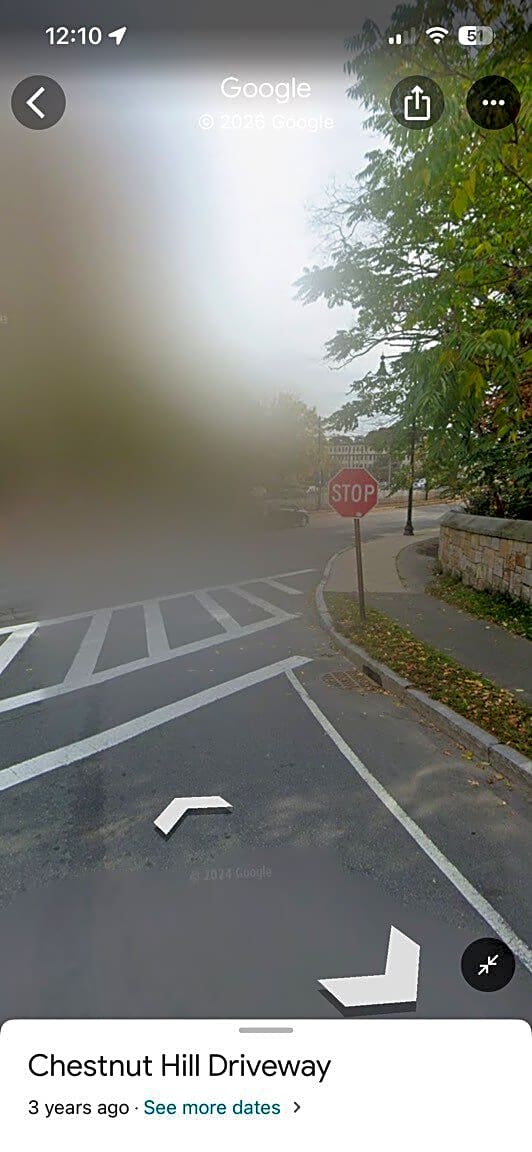 Intersection Of Chestnut Hill Dr And Commonwealth Ave, Brighton, MaStop sign on Chestnut Hill Ave at intersection with Commonwealth Ave is missing. Picture is from Google maps when stop sign was present