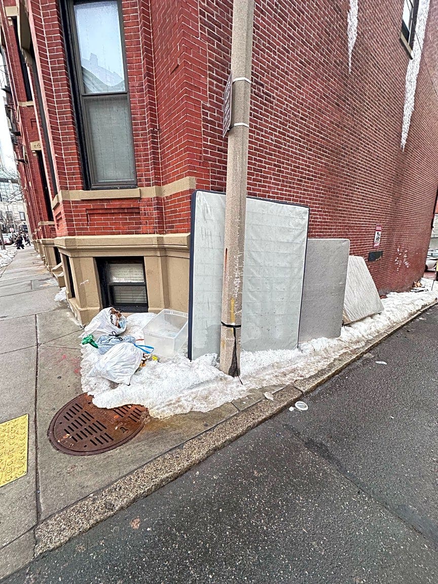 6 W Cottage St, Dorchester, Ma, 02125Trash is blocking the sidewalk.