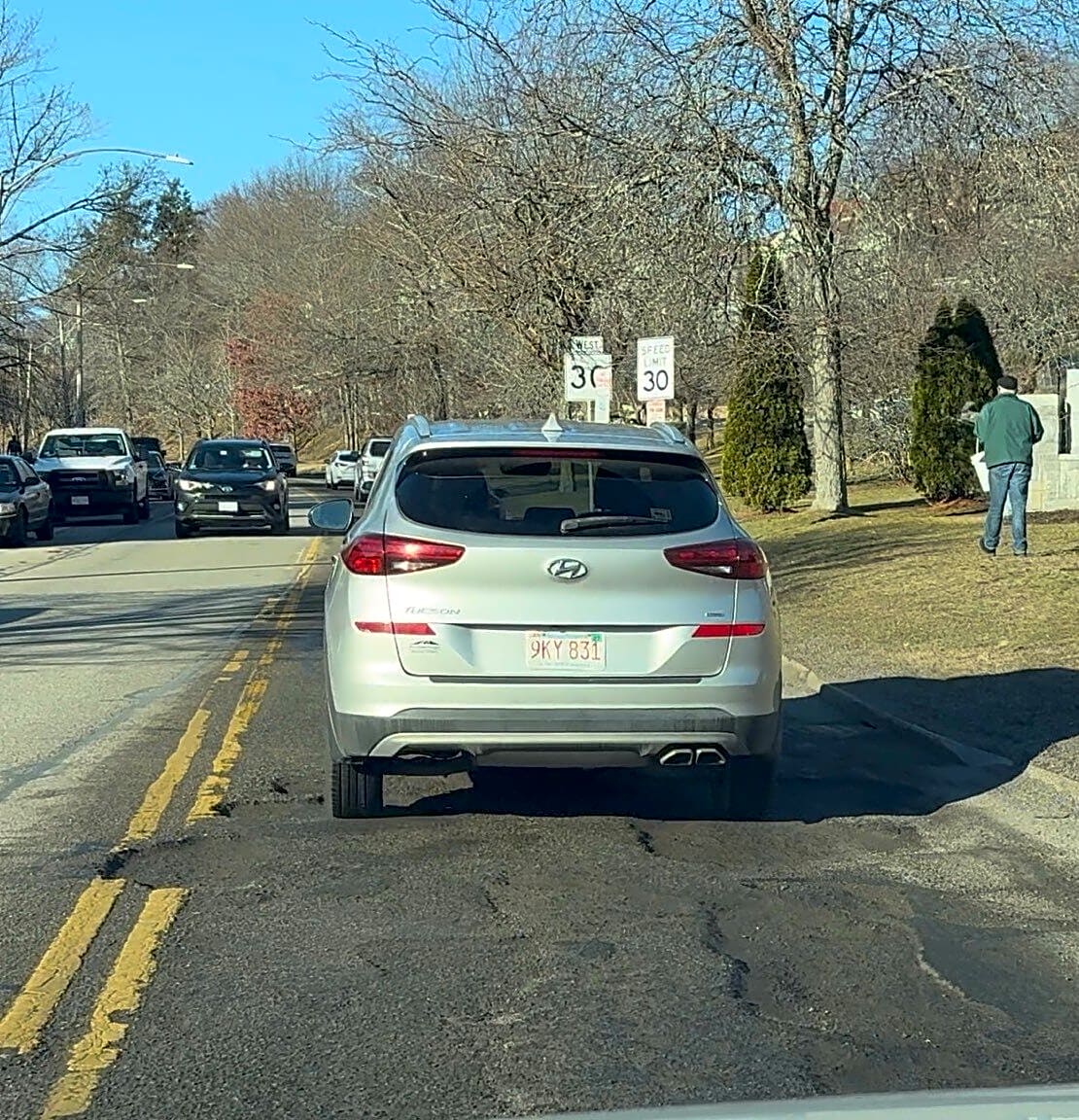 8 Kenwood St, Dorchester, Ma, 02124Double parked trucks happen all the Time. | The closest intersecting street: [Washington] How is the car parked illegally: [Double parked]