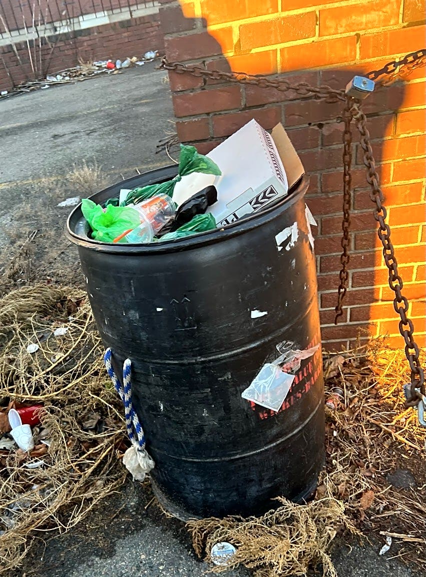 566 Dorchester Ave, South Boston, Ma, 02127Overflowing trash barrel this is a constant at this address