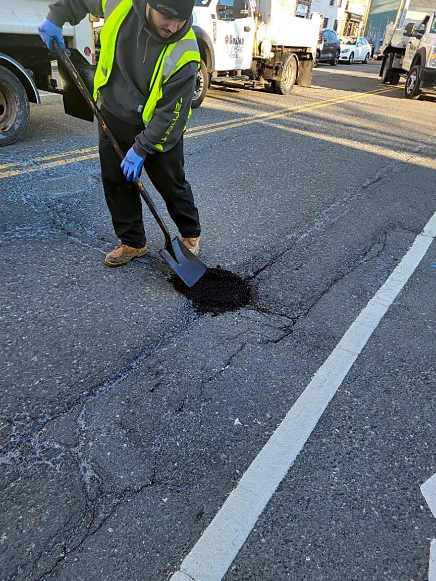 288 Bowen St, South Boston, Ma, 02127Type of Work: [Unknown] Name of Contractor/Utility working: [Unknown] Are the contractors on-site: [Yes] Please specify details.: [Contractors blocking roadway with trucks and materials, no barriers no police detail and no permit found]