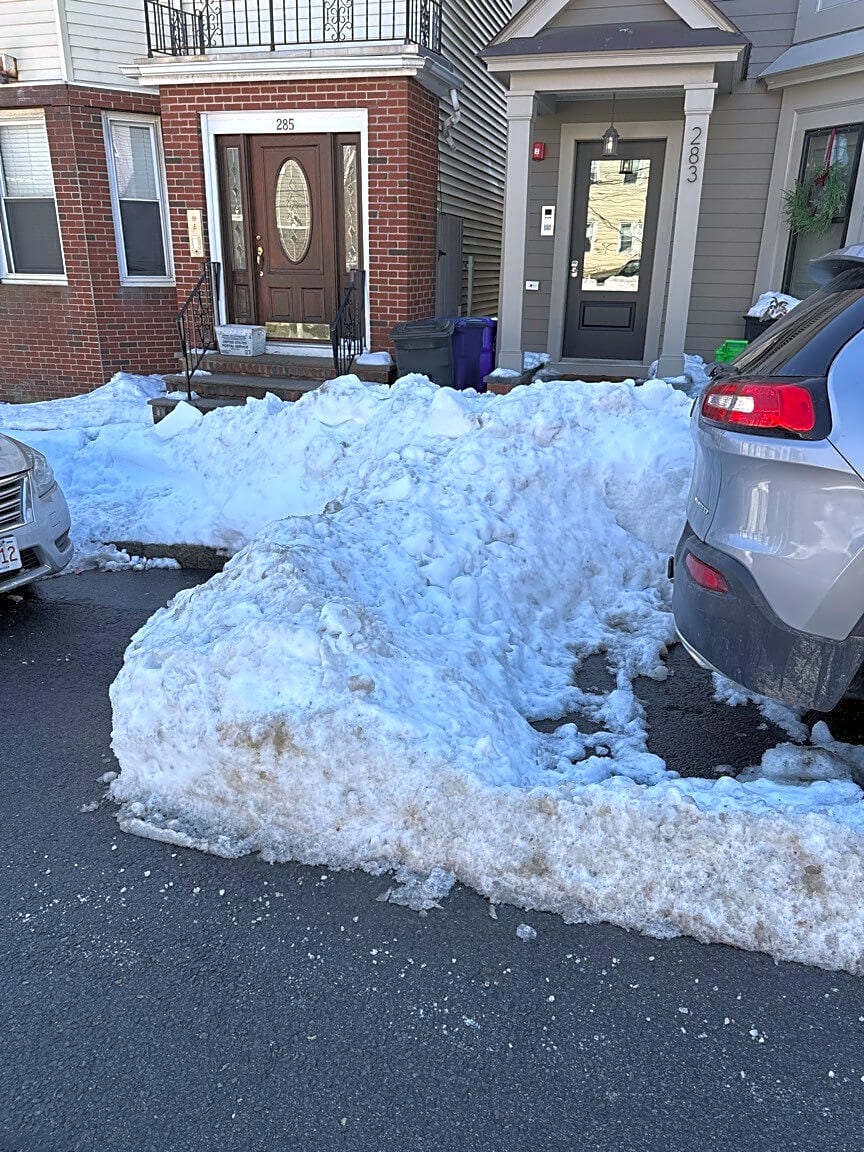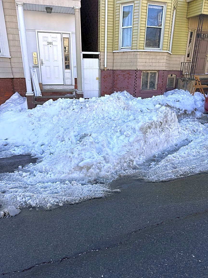 Intersection Of Cambridge St And Brighton St, Charlestown, MaLarge snow pile blocking cross walk