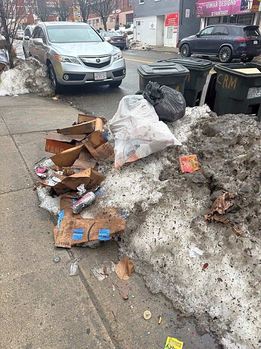 37 Milford St, Roxbury, Ma, 02118Litter left on sidewalk after trash pickup