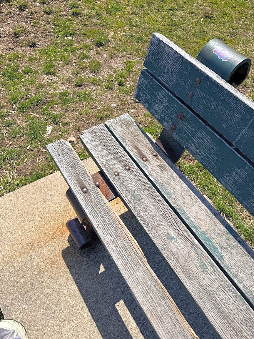 Freeport St & Victory RdBroken bench at victory rd park