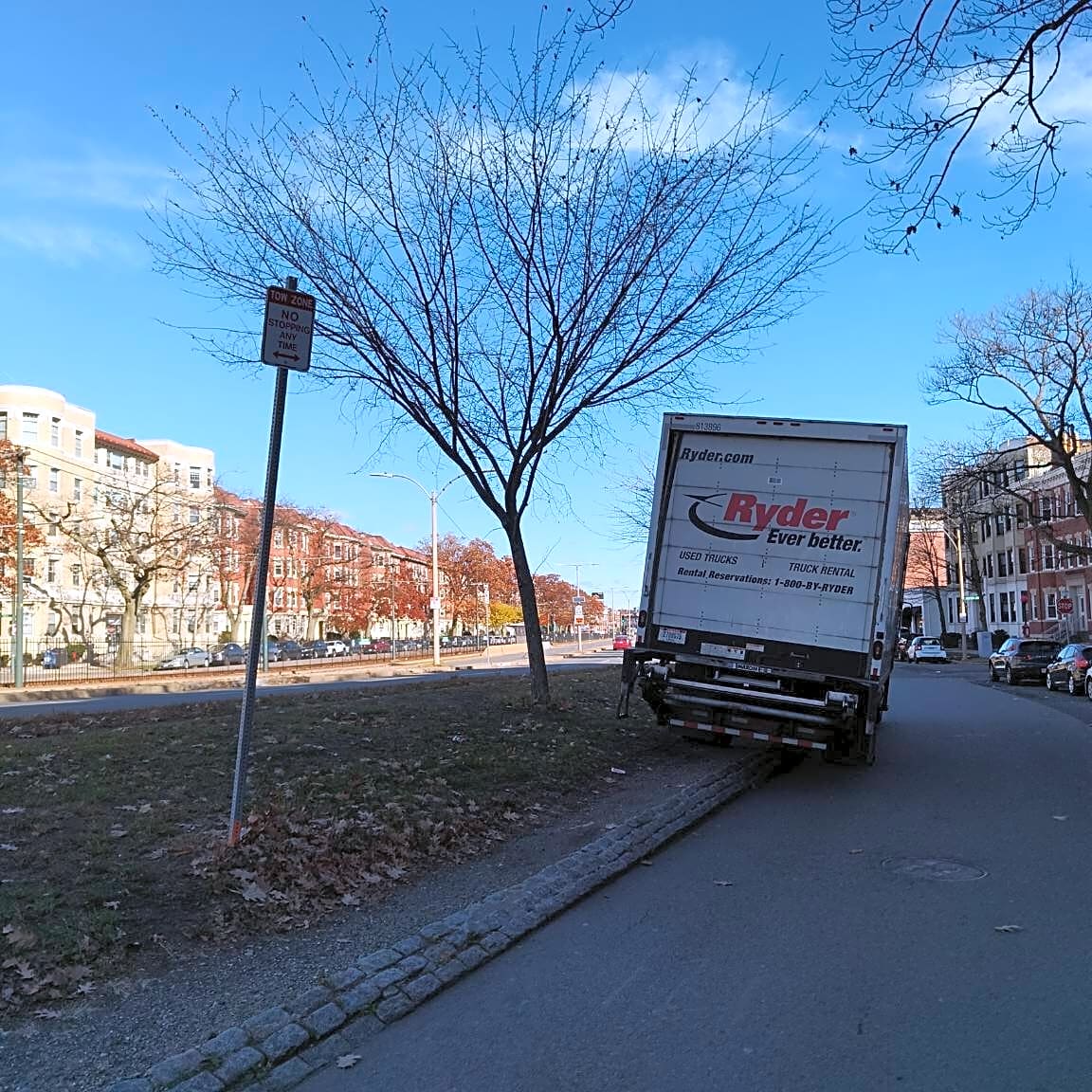 Intersection Of Griggs St And Commonwealth Ave, Allston, MaRyder truck (indiana 2789075) parked on grass