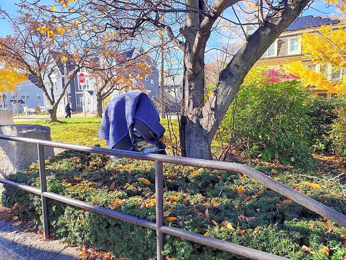 Intersection Of Call St And Carolina Ave And Williams St, Jamaica Plain, MaBoxes and other objects (blankets, carts, clothing, stuff)