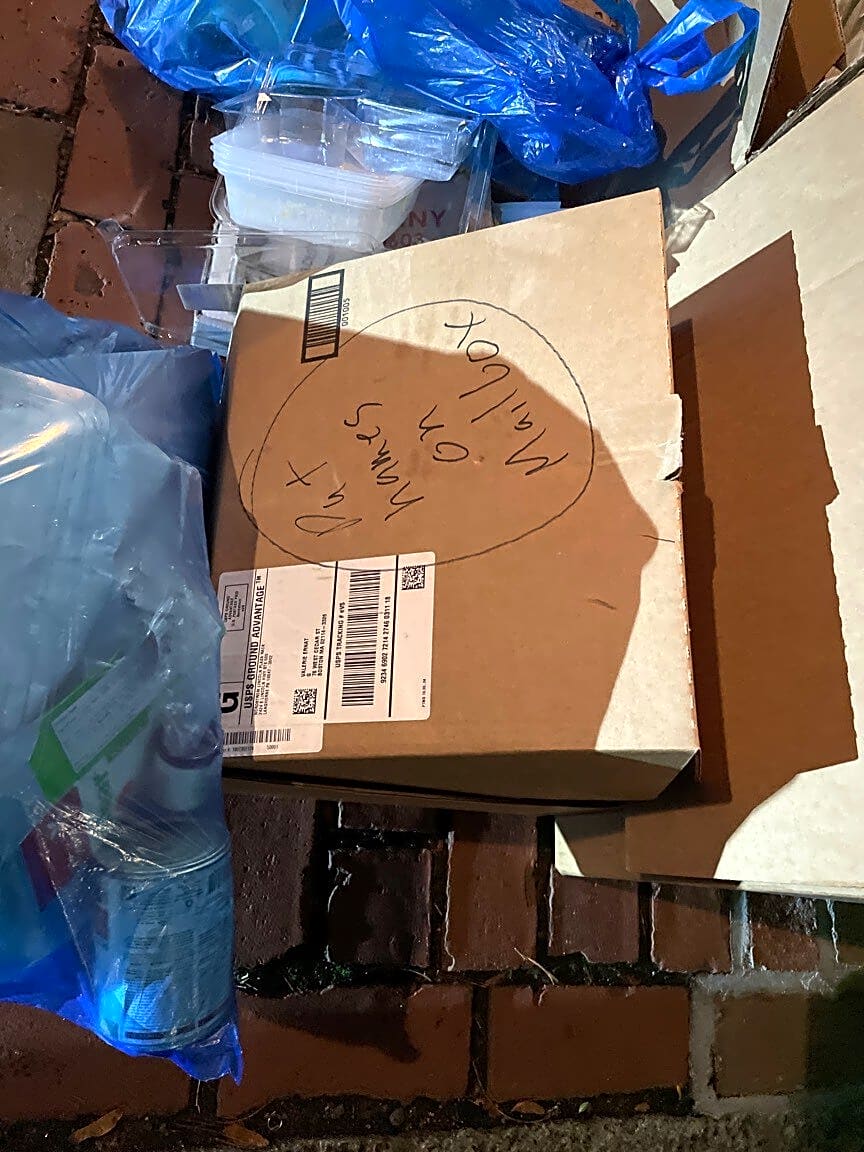133 135 Charles St, Boston, Ma, 02114Box not broken down from 76 West Cedar Street and placed at wrong address of 135 Charles Street.