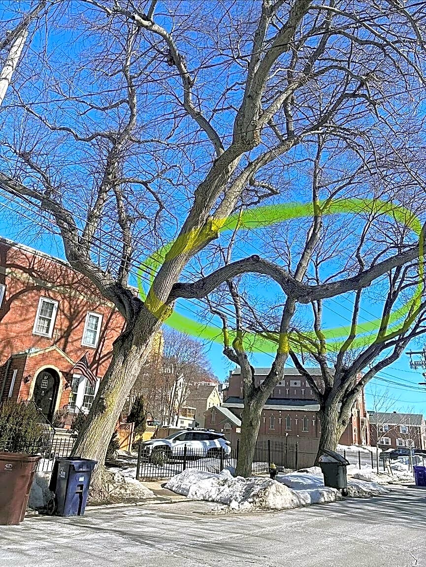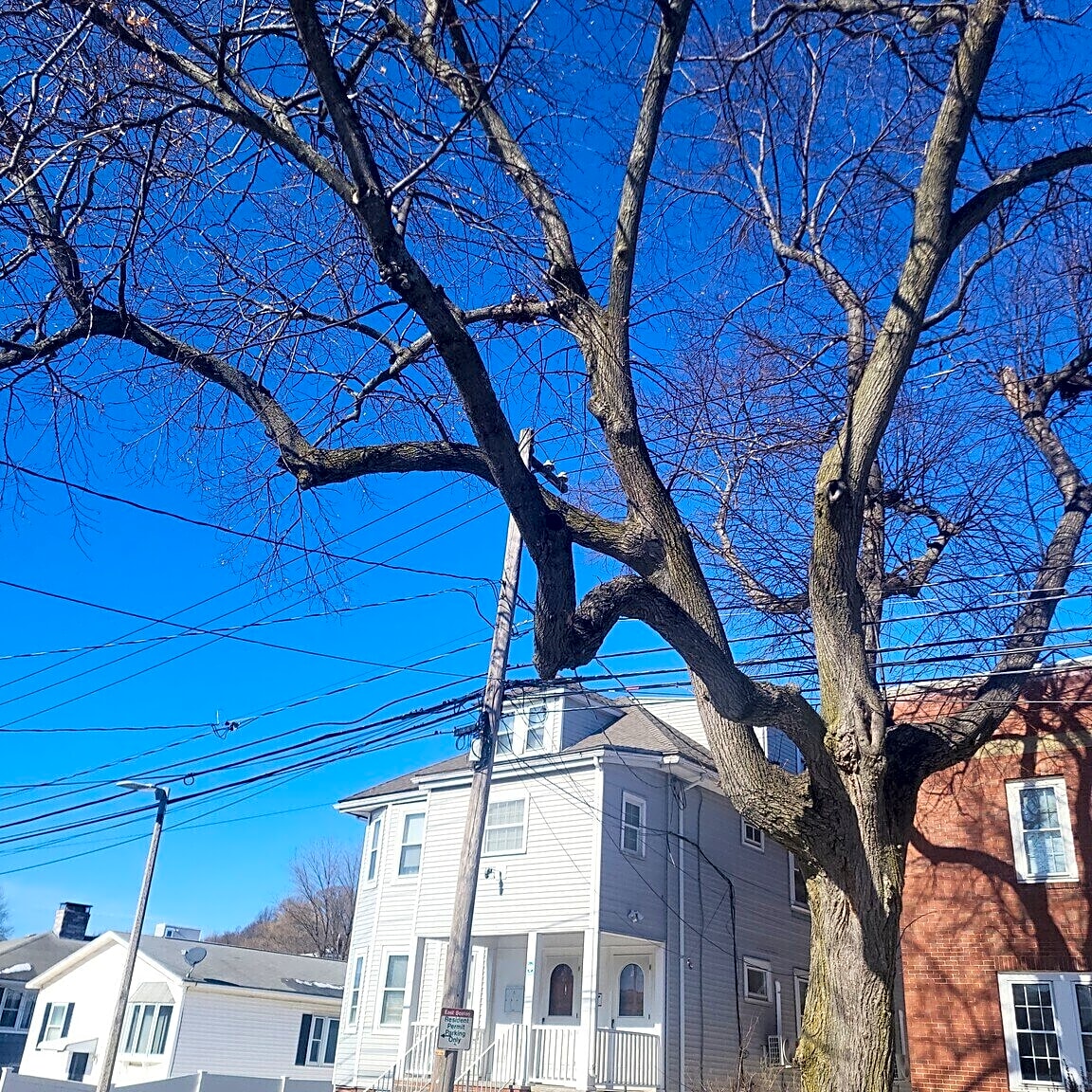 87 Ashley St, Boston, MA 02128Large tree branch is slowly falling down. I’m noticing it’s slowly falling because trucks drive by and it looks like it’s going to hit the top of the truck. I’m concerned because the branch extends over the street and is near electrical wires