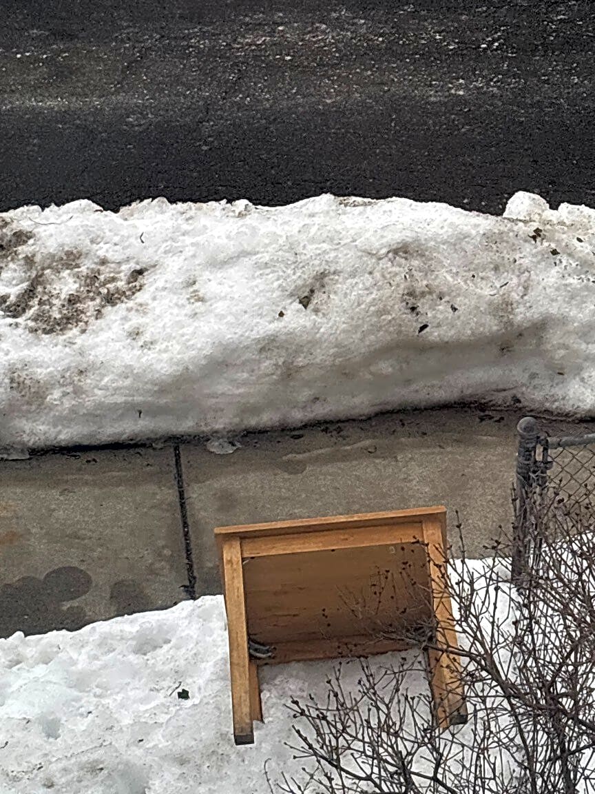 49 South St, Jamaica Plain, Ma, 02130Small table dumped in snow. Has been “moving” around the block for a few days.