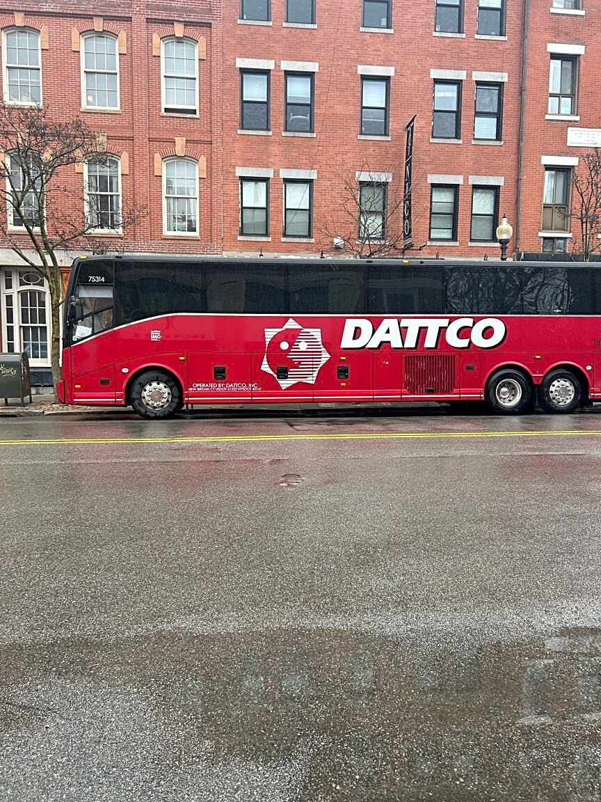 Intersection Of Harris St And Hanover St, Boston, MaIllegally parked tour bus on Hanover Street