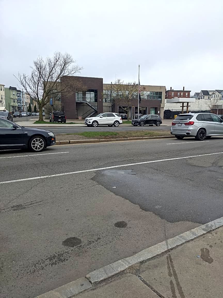 493 495 River St, Mattapan, Ma, 02126Pot hole on river street near Mattapan t station.